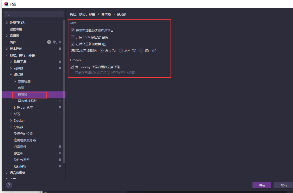 如果想要完成 Spring Boot 项目的热加载,完全不需要任何依赖,使用 IDEA 自带的更新策略即可,如下图,随后以 DEBUG 方式运行项目就可以做到热加载了